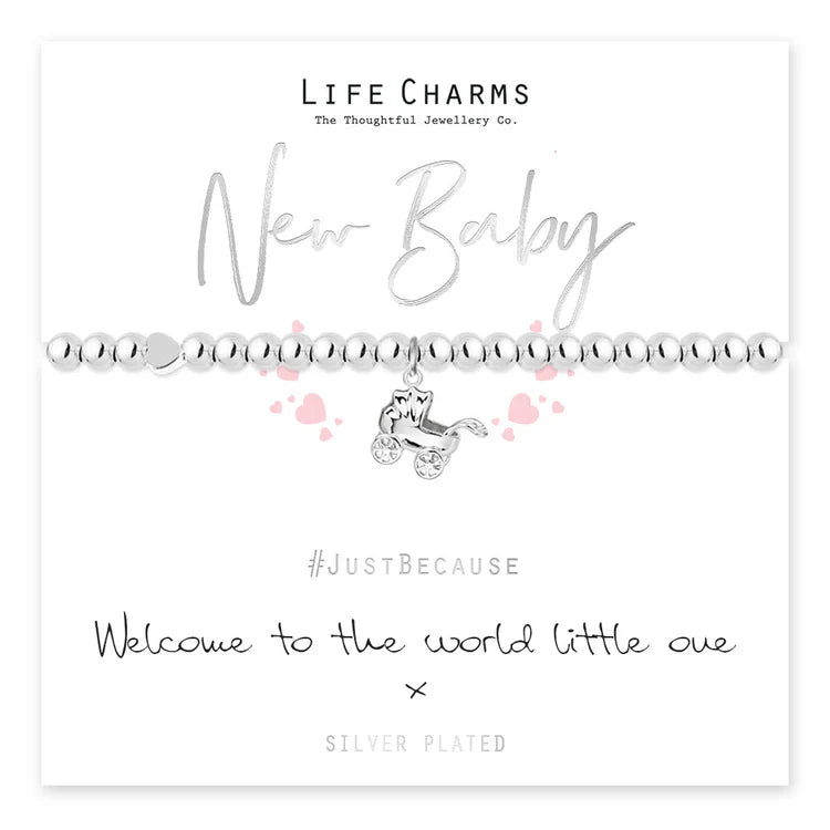 The bracelet comes presented in a luxury gift box with a Just Because 'Welcome to the world, little one!' card.