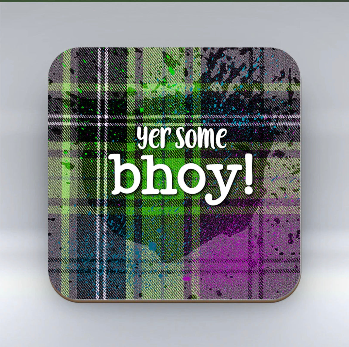 Melamine finished quality coaster with cork or felt backing for yer favourite bhoy!