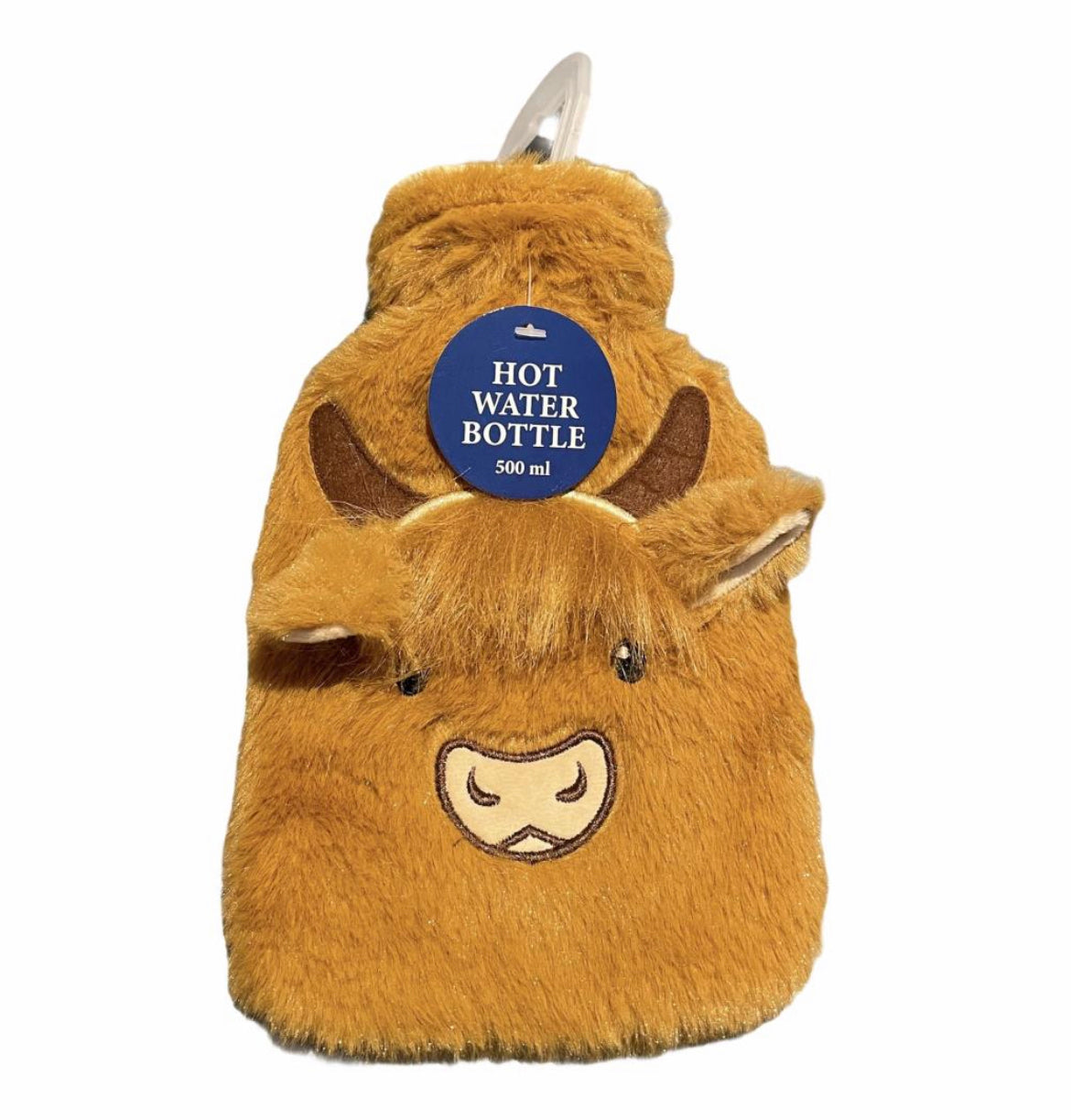 This wee hairy Highland cow (or Hielan' coo) hot water bottle is super soft and will keep you cosy when it's chilly. Holds 500ml.
