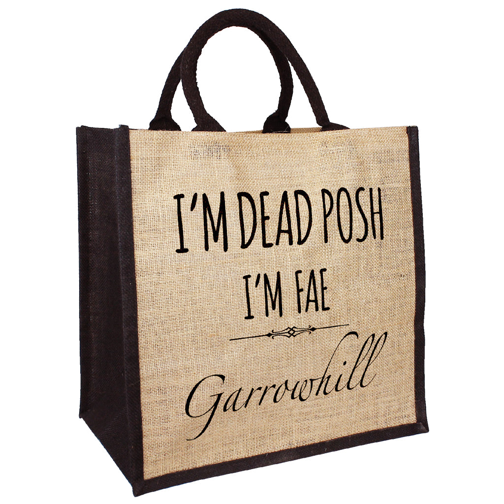 This premium jute shopper is ideal if you're looking for an unusual gift, or if you just want to look 'dead posh' when you go the messages.