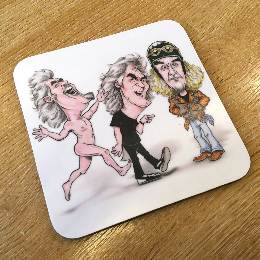 Melamine finished quality coaster with cork or felt backing featuring images of Scotland's favourite comedian by Edd Travers - Scotland's leading caricaturist. Size 100mm x 100mm.