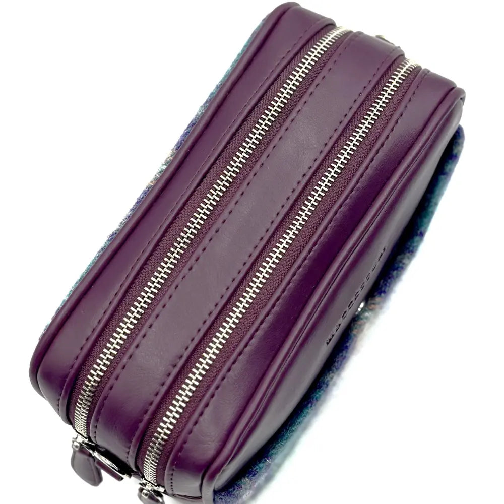This Harris Tweed Camera Bag is designed with two internal zip compartments to make sure you can store all of your essentials, an external zip pocket and an open pocket secured with a magnetic closure. Each Harris Tweed design comes with a different webbing strap complementing the colours in the Harris Tweed weave. This iconic Harris Tweed bag can be carried throughout the day, before being taken into the night as a clutch thanks to the removable strap. Our vegan leather trim differs depending on the Harris Tweed colour you choose: