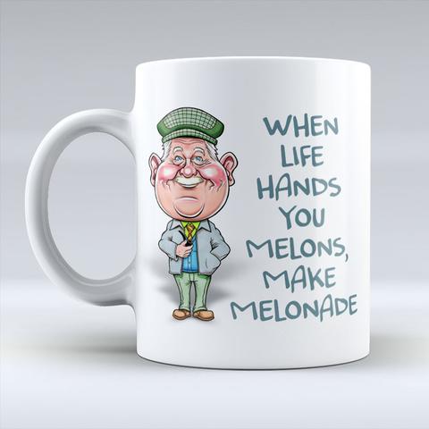 Ceramic mug featuring images of Scotland's favourite auld pals by Edd Travers - Scotland's leading caricaturist.
