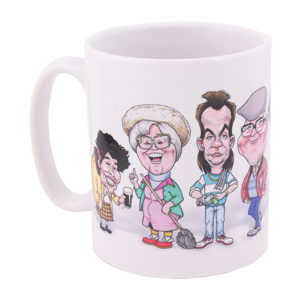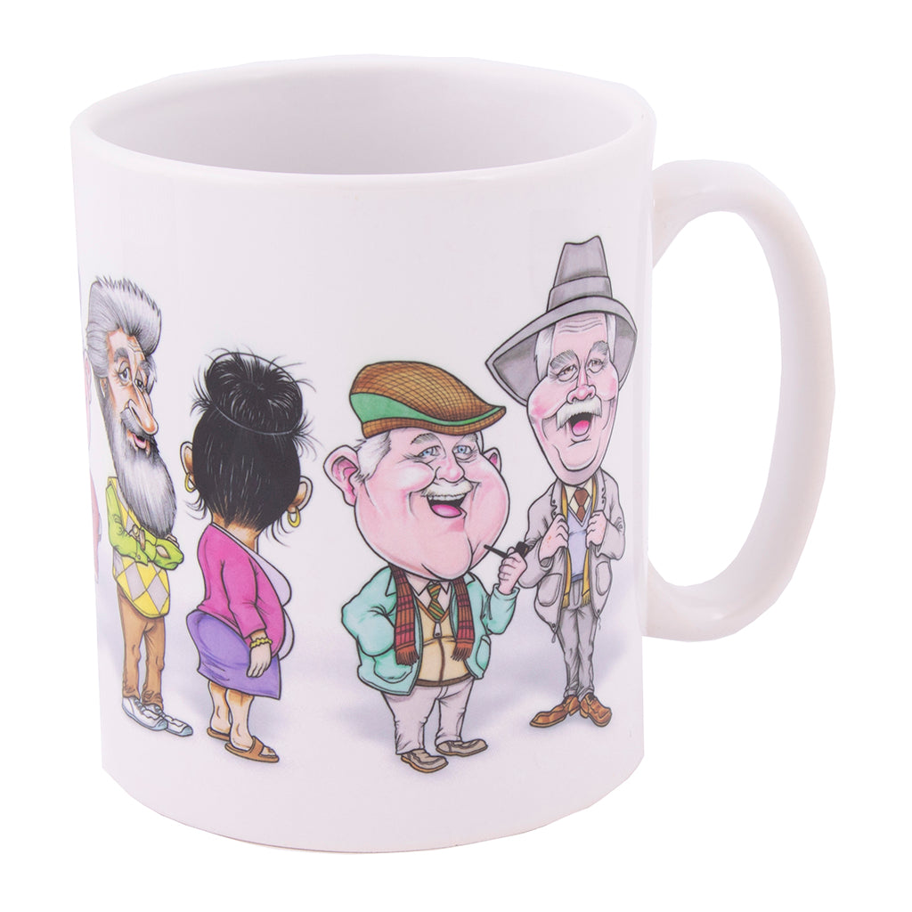 Ceramic mug featuring images of Glasgow's favourite auld pals.