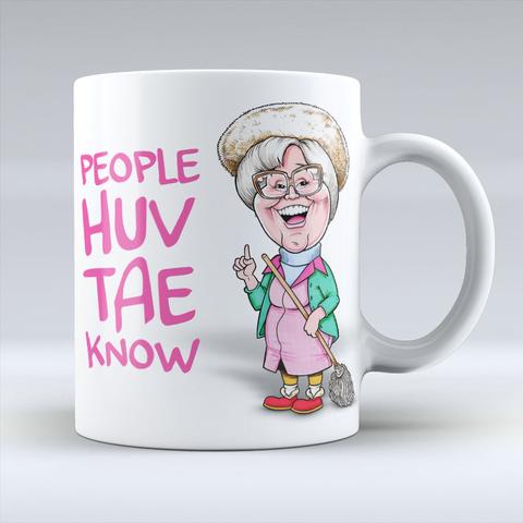 Ceramic mug featuring images of Scotland's favourite auld pals by Edd Travers - Scotland's leading caricaturist.