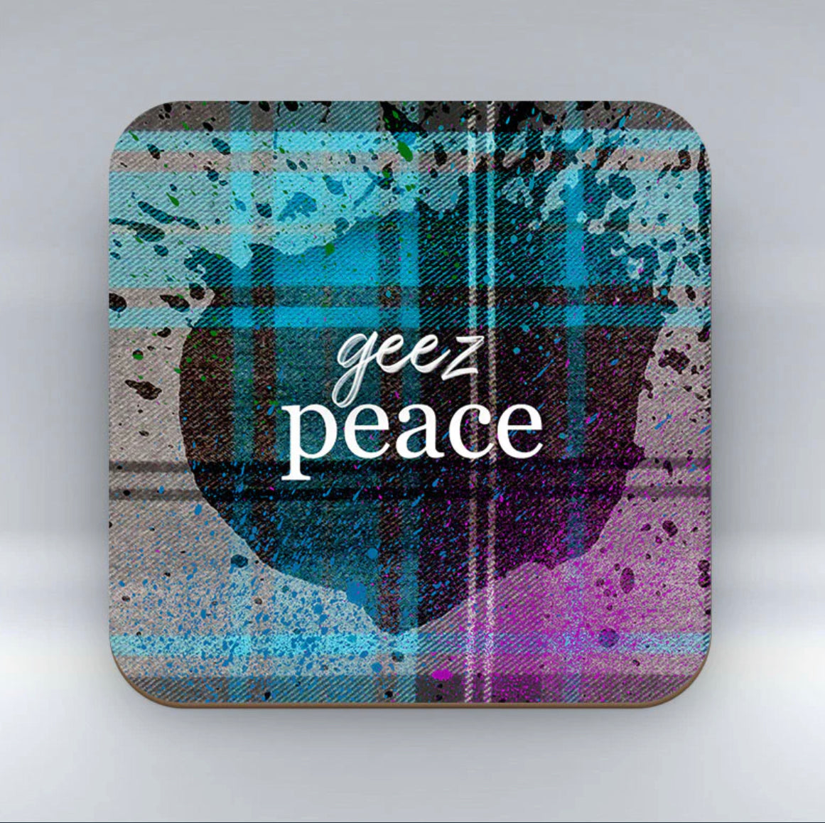 Geez peace melamine finished quality coaster with cork or felt backing.