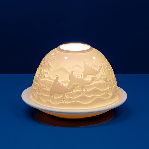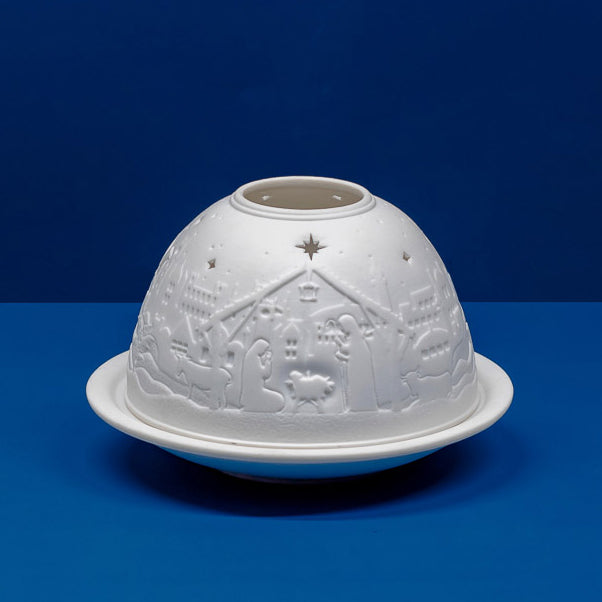 Beautifully detailed porcelain dome for use with a tealight or led light, which gives off a soft glow. Supplied in a gift box.
