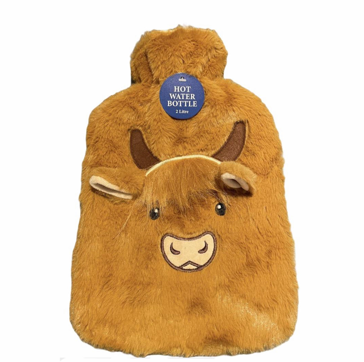 This large hairy Highland cow (or Hielan' coo) hot water bottle is super soft and will keep you cosy when it's chilly. Holds 2 litres.