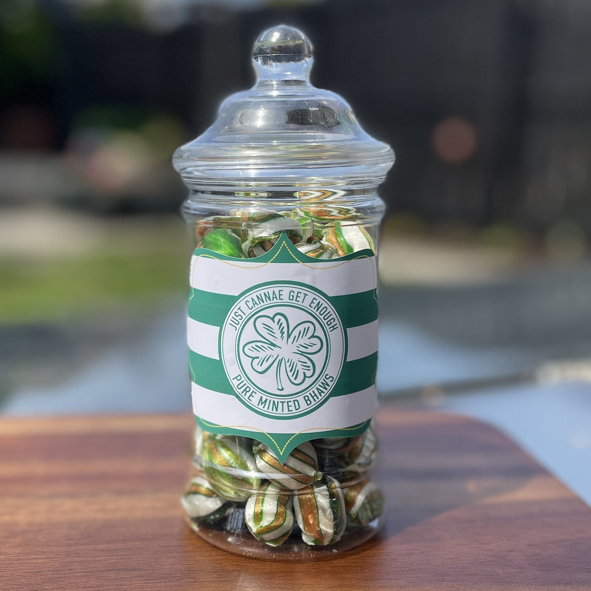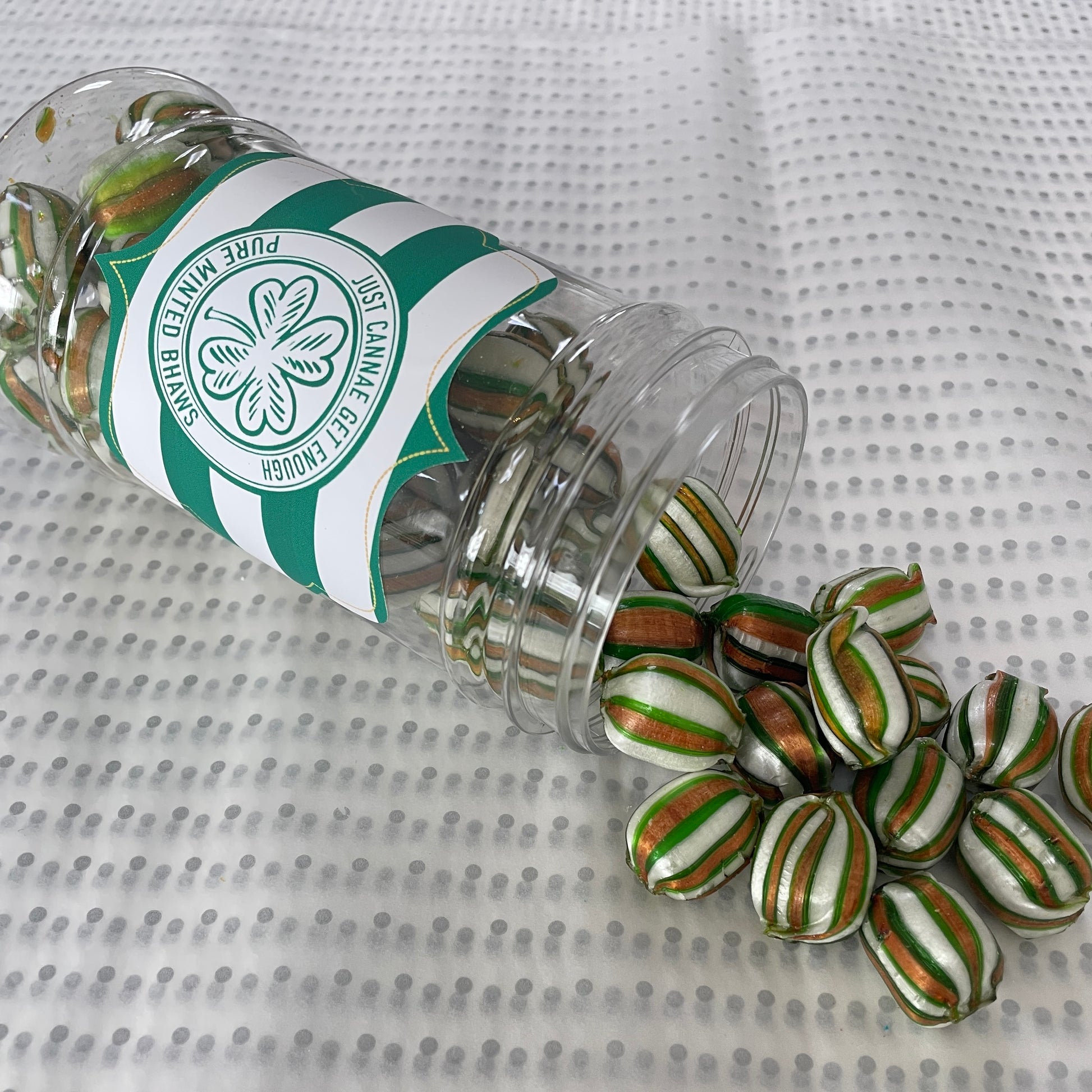 Great gift for fans of Glasgow Celtic! Mint flavoured boiled sweets in a Victorian-style plastic jar. 250g.