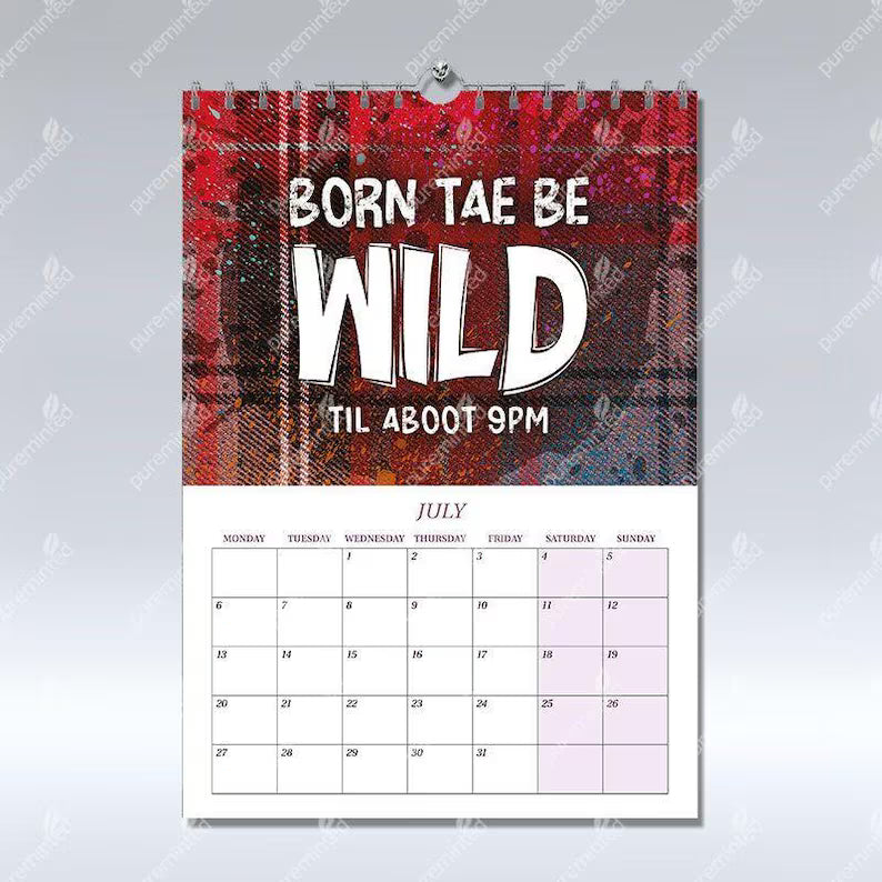 12 month A4 wall calendar with envelope included, 12 leaf plus front and back cover, wiro-bound with hanger. Supplied with a card envelope.