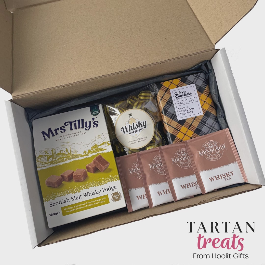 Tartan Treats Scottish gift hamper that can be sent straight to someone with a personalised message.